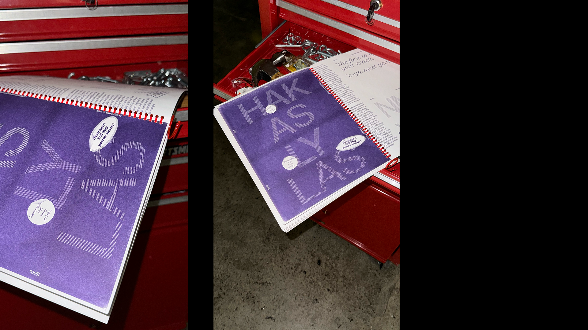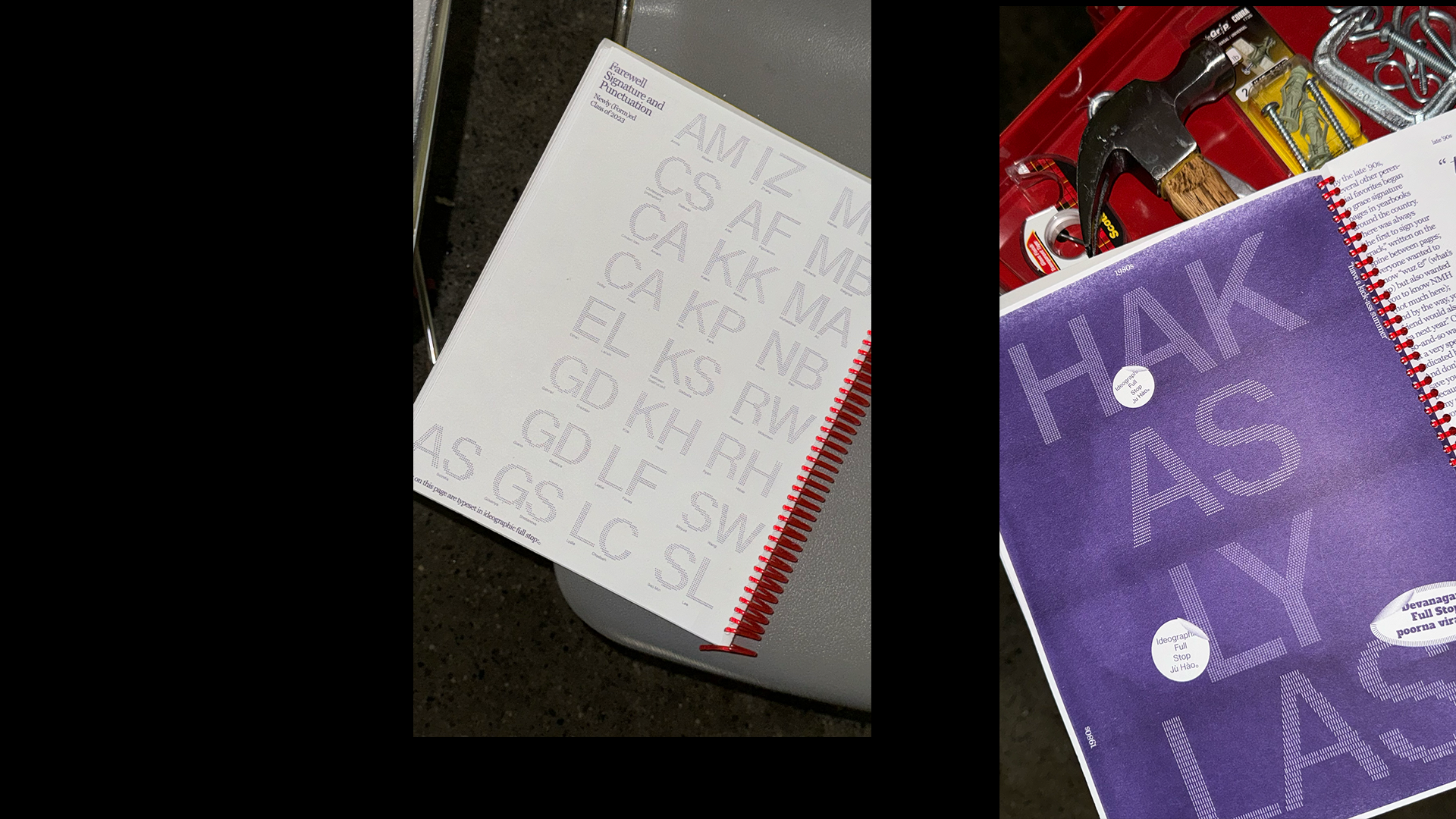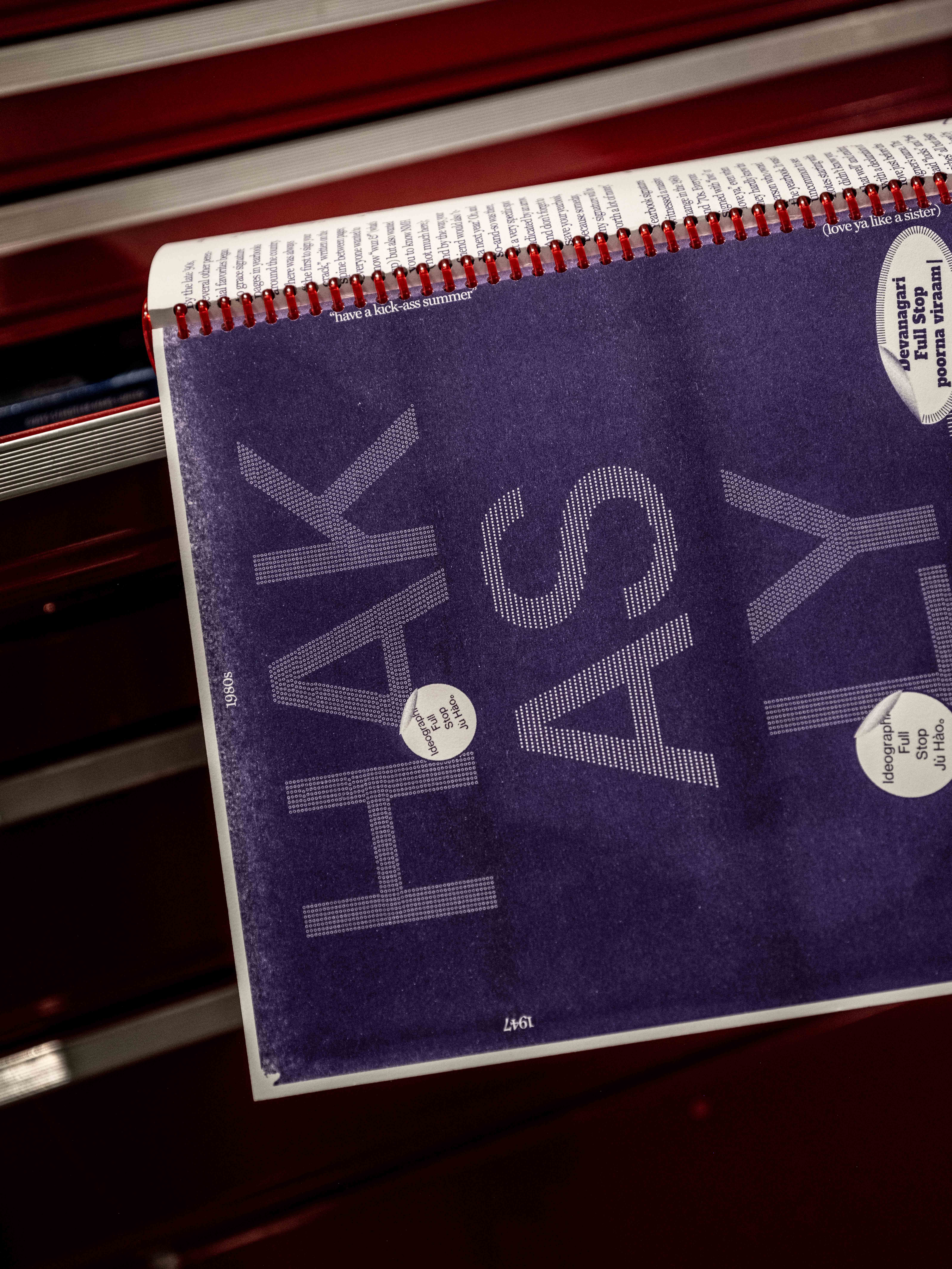 A speculative yearbook typeset in full stops coming from four different languages. Sourced from Jennifer Billock’s “Why Do People Sign Yearbooks?”, this micro publication introduces how yearbook signatures evolve over years ever since the birth of first yearbook back in 1914 at East St. Louis High. Earlier ones are mostly hand-written, sourced from poems and scrapbooks; later they are largely replaced by acronyms inspired by text messages. Back cover with initials of everyone in the class designed with ideographic full stops.