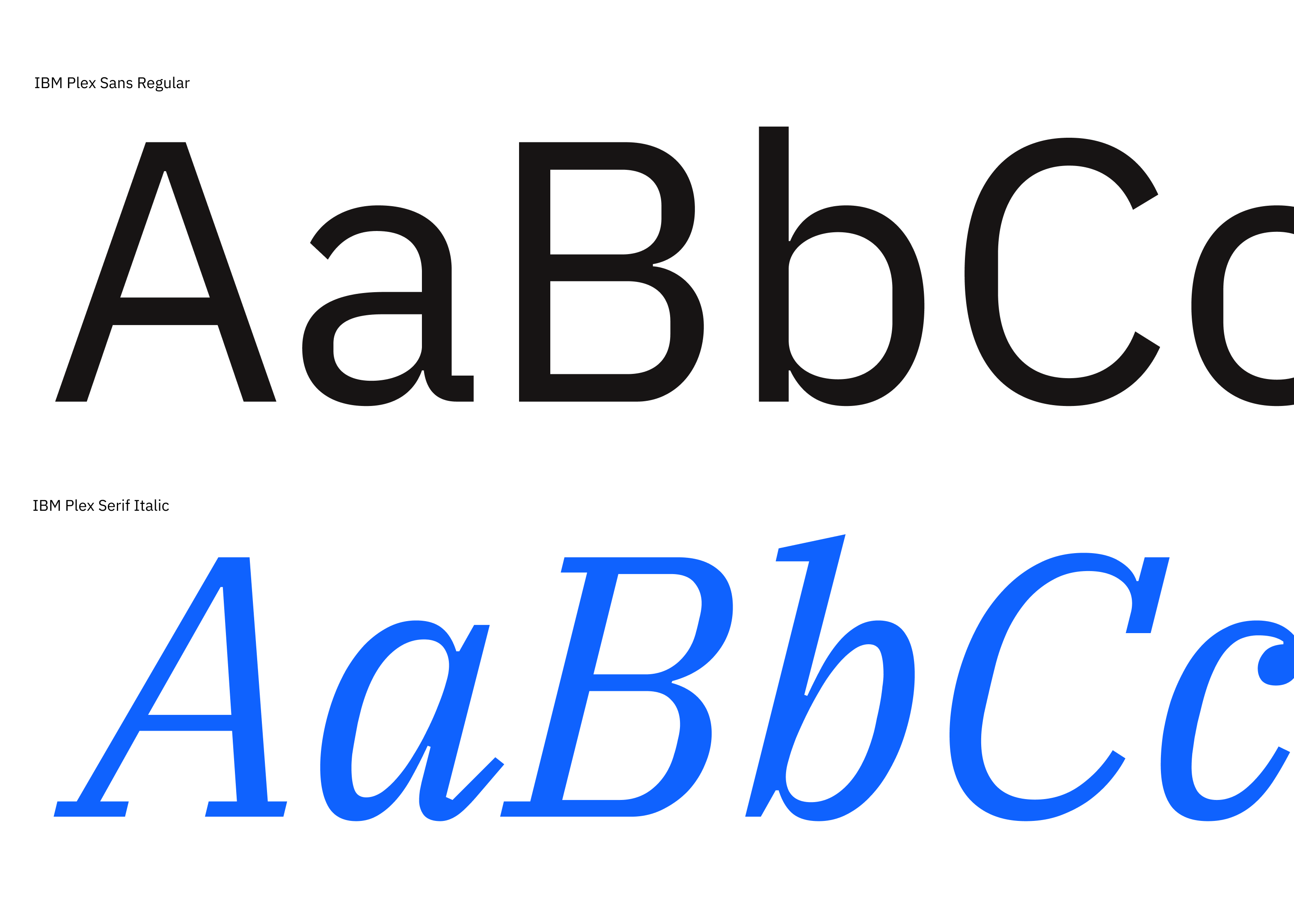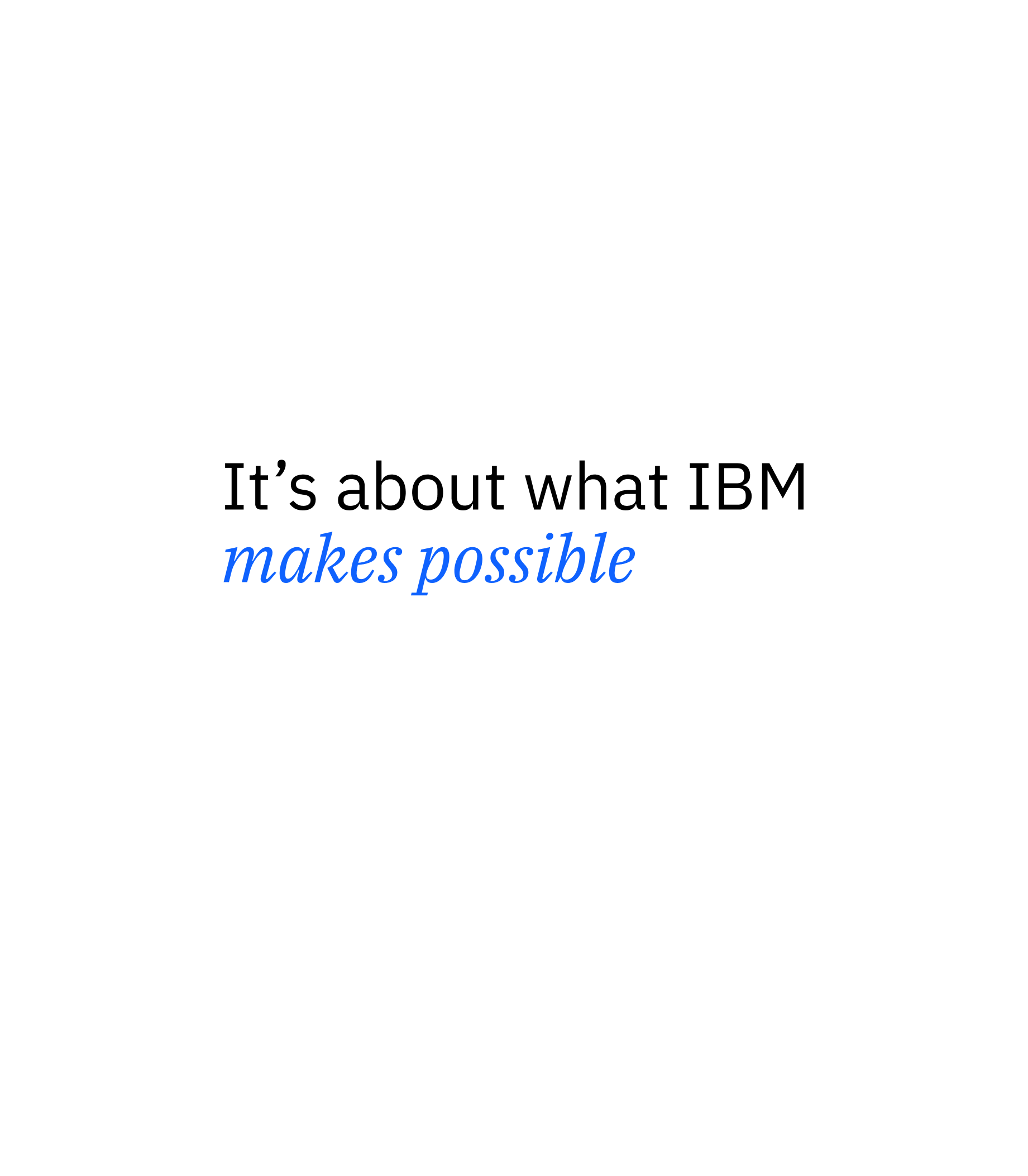 IBM Plex Sans Regular is our core typographic style. IBM Plex Serif Italic is used as a purposeful callout to emphasize key words or phrases.