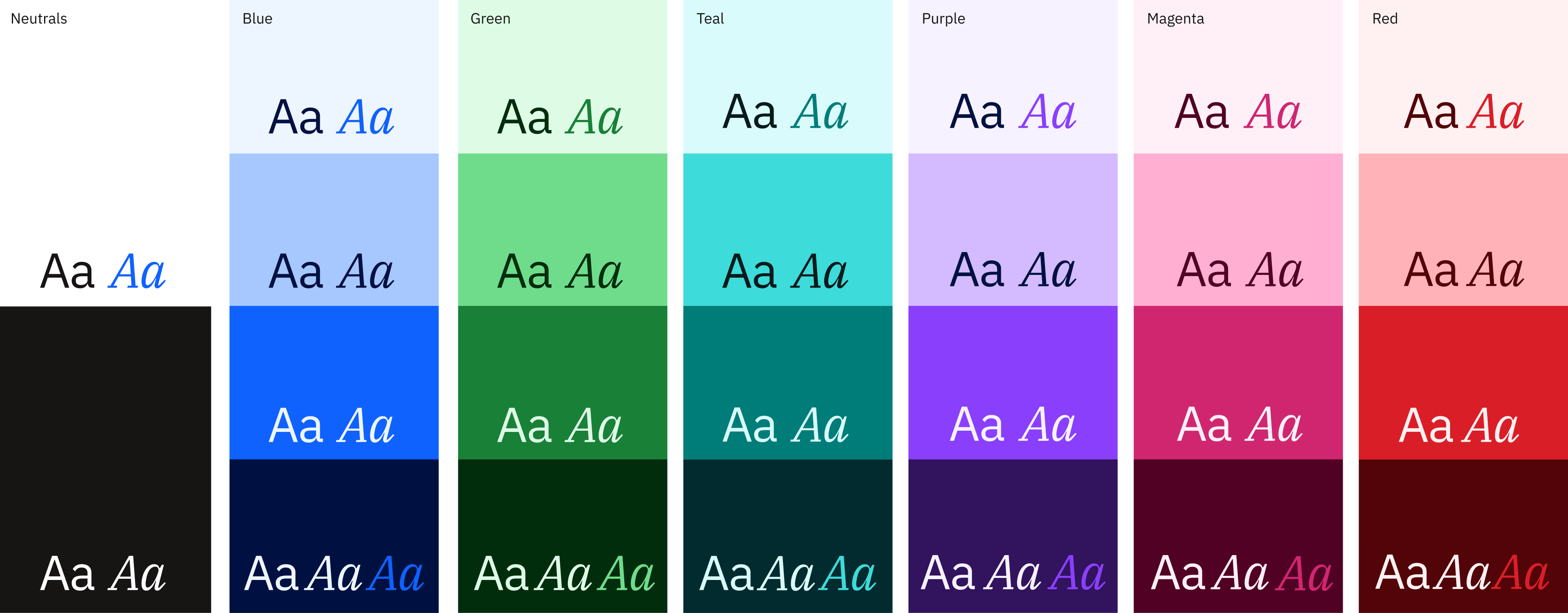 Palette is built around a core set of neutrals and blue tones, supported by an extended range of tonal colors drawn from the broader IBM palette.