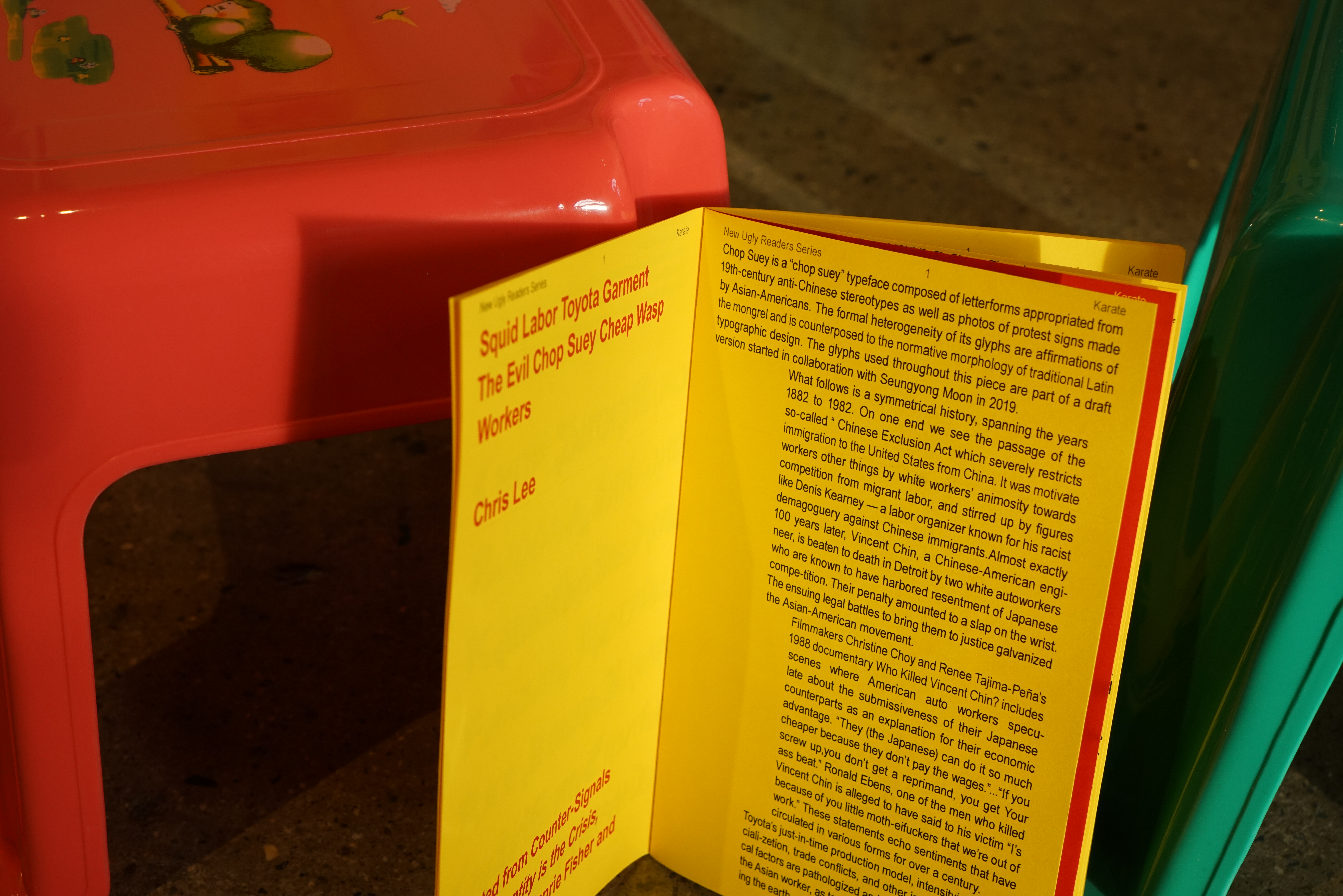 New Ugly also addresses underlying colonialism and colonizing power behind the ugliness of typefaces like Karate and Papyrus. The ugliness is constructed by appropriating bits and pieces of another exotic culture, the Far East, Mysterious Asia, and the Tropics. New Ugly is a movement but it is also a manifesto and a way of being.